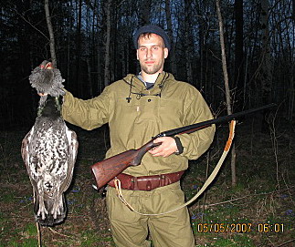 Охота на глухаря, одна из самых красивых охот. Есть в ней что-то таинственное и первобытное. Может потому, что происходит она в утреннем полумраке, и требует от человека пробуждения его охотничьих инстинктов, хорошего слуха, острого зрения, умения быстро и бесшумно передвигаться по лесу, наблюдательности, терпения и выдержки, вобщем всех качеств охотника. Не каждому удается побывать на такой охоте, пережить эти волнующие моменты. Поэтому поздравляю!