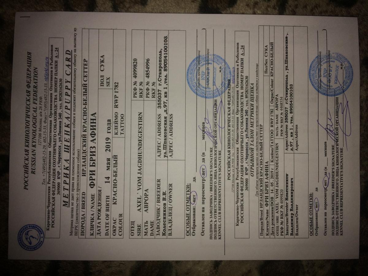 9. Мать: АВРОРА НИКА 22.04.2016 гр., N РКФ - 4468554; ВПКОС - 1007/17