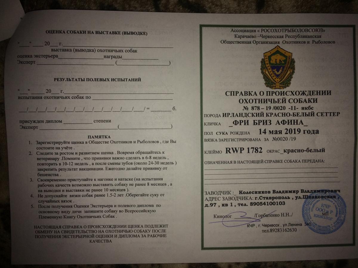 13. Кинологическая организация, спланировавшая вязку (если не плановая указать): Карачаево-Черкесская Республиканская Общественная Организация Охотников и Рыболовов. РОССИЙСКАЯ ФЕДЕРАЦИЯ ОХОТНИЧЬЕГО СОБАКОВОДСТВА НОМЕР ПАПКИ а-24