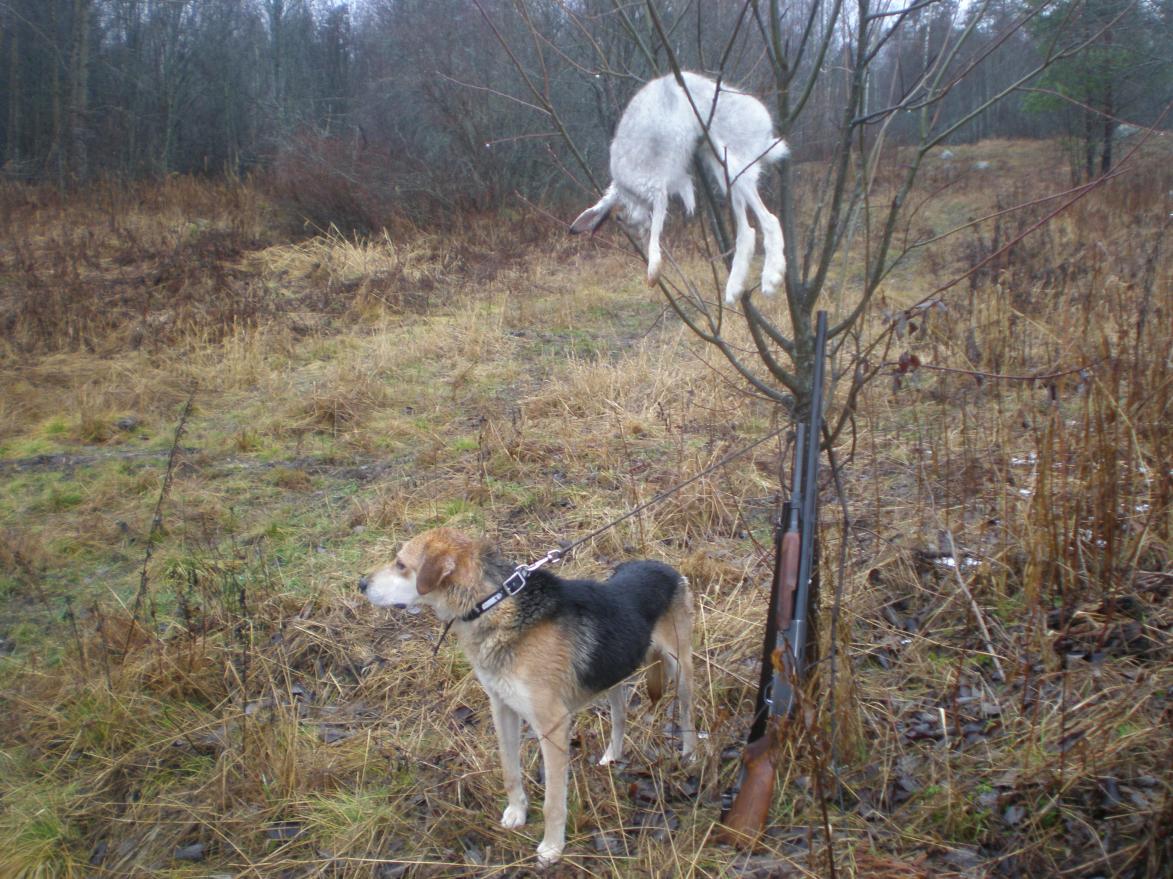 Следов куницы дохрена, а заячьих нихрена. В итоге мой Бармалей поднял патрикеевну. Как ни странно, ходила не большими кругами, и вышла на товарища, который благополучно промазал. Получив под зад дроби, она решила больше кругами не ходить и рванула по прямой, после чего решил снять с гона.
