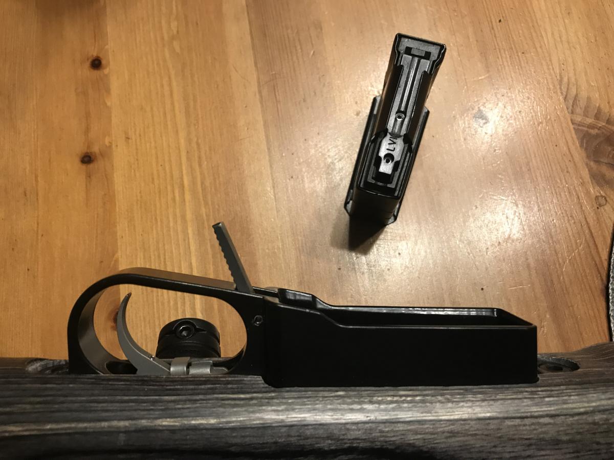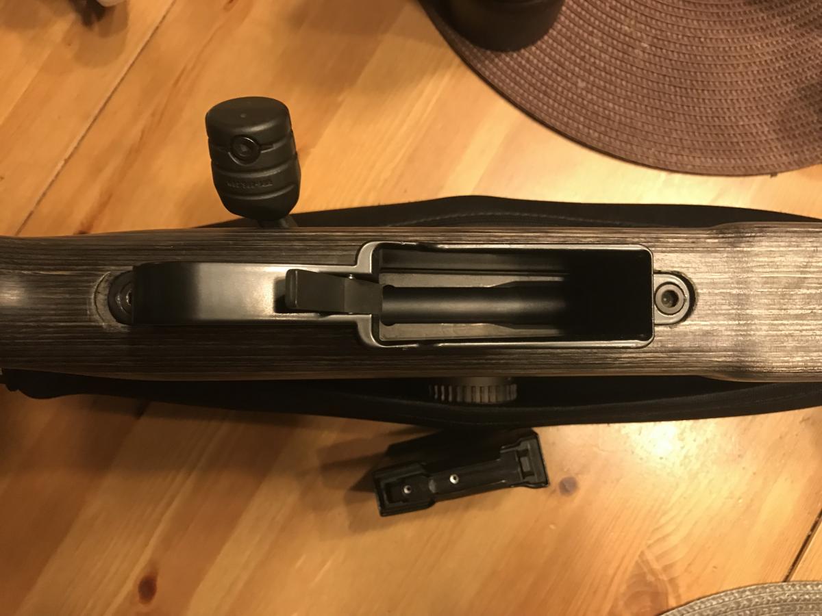 Ложа RRS, регулируемая, другой нет, состояние ложи - без существенных изъянов. Сделан аккуратный пиллар- и гласс-беддинг, втулки соогные, прилегание идеальное. Врезан триггергард под магазины AI (от Мехсольвера) , врезан очень аккуратно хорошим мастером. Родной триггергард и родную пародию на магазин если надо - отдам бонусом. Магазин AI на 5 патронов от LVI, работает отлично, никаких закусываний ни разу не было. Резьба 18/1 c гарантированно ровным торцом и не просаженная, нарезана не абы кем.