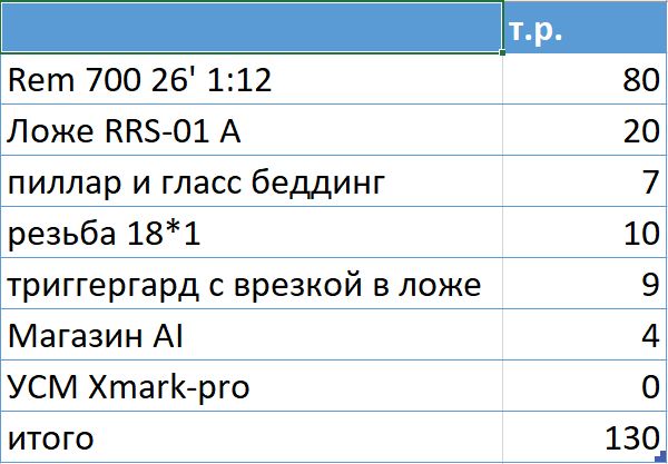 Рецепт подобран, фото мишени с 5ю дырочками (на сунаре!) прилагается. Комплектация-на фото в приложении.