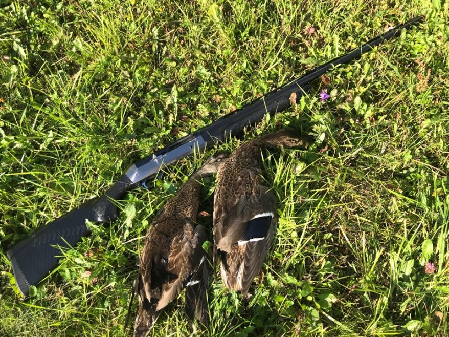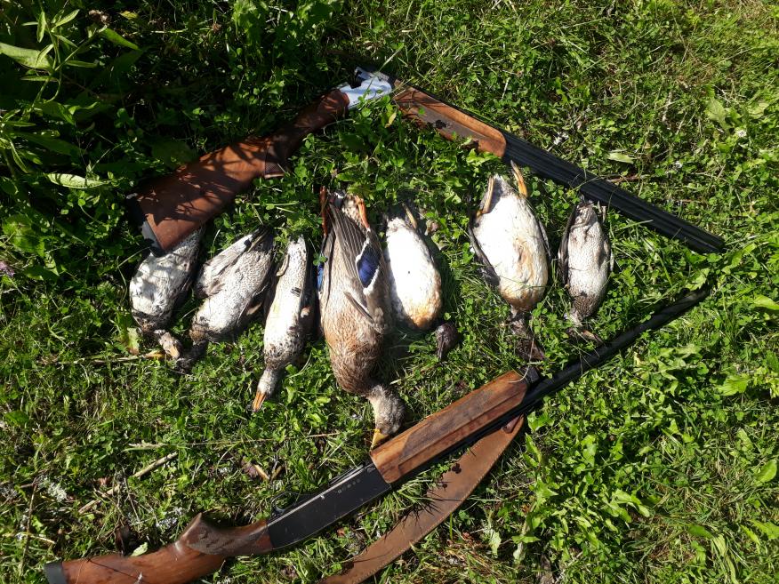 В этот год к открытию аномально низкая вода, на речушке, где охотников поменьше чем на озерах утки мало было. Так или иначе, два выходных подряд выезжали, по 5 штучек на брата брали. С подранками досадно, вроде стараемся над камышом не бить, первый выезд двух не нашли, второй трех.
