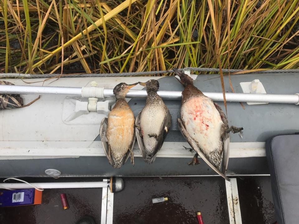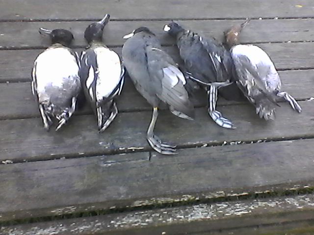 Вчера за весь день, все там же :) на воде были с 6 до 19 часов. Места меняли 3 раза, с поисках пролёта. Чирков ни одного не видел, наверное уже улетели. Кряква летала, но ни одной не приземлили. Только свиязь и чернеть морская. Это результат на двоих.