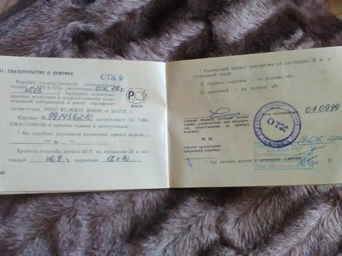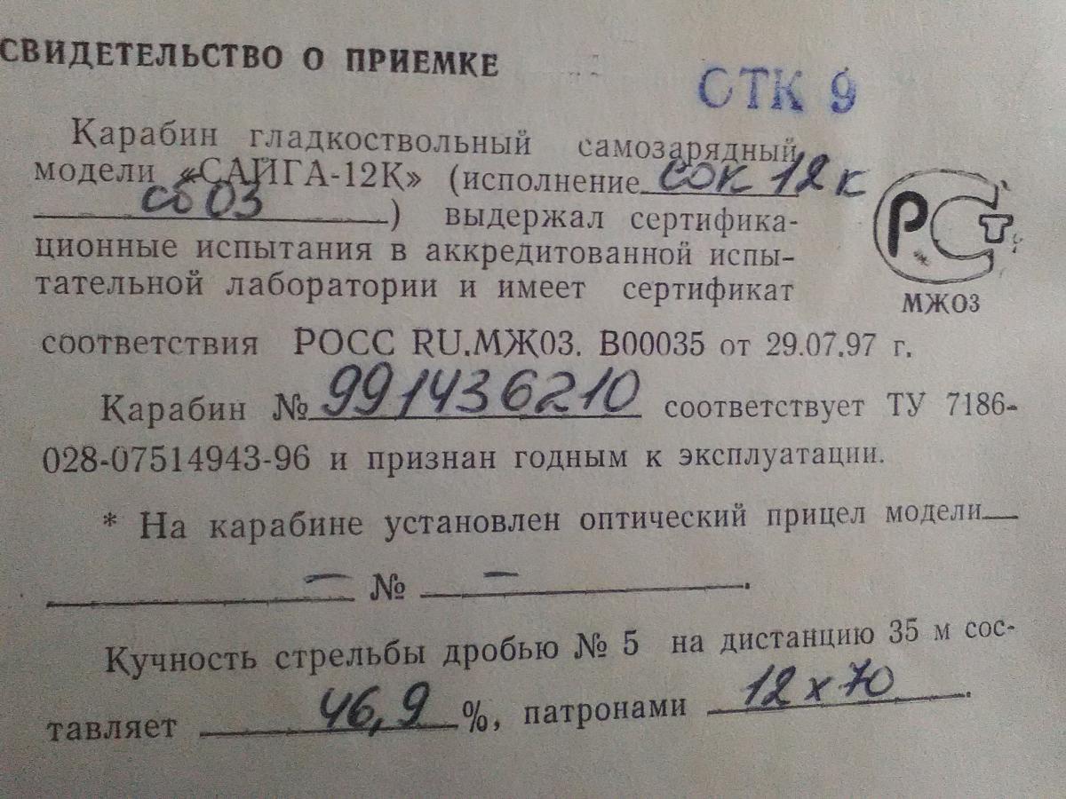 1. Модель ружья: сайга 12