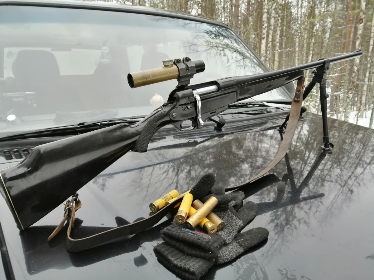 Одностволка ИЖК-1, ствол хромирован, но имеется сыпь, трещинка на шейке ложа. Владею данным экземпляром 18 лет. Мой настрел, думаю, порядка 300. Приобретал его через ЛРО, было изьято у какого-то дедушки в деревне, тогда уже состояние ствола было не айс - итог не самого бережного хранения, плюс ложе было покрыто краской, потом я всё это счистил и покрыл яхтенным лаком. Лёгкое, удобное, идеально для ходовой охоты, если не нужен второй выстрел. В комплекте чехол и ремень.