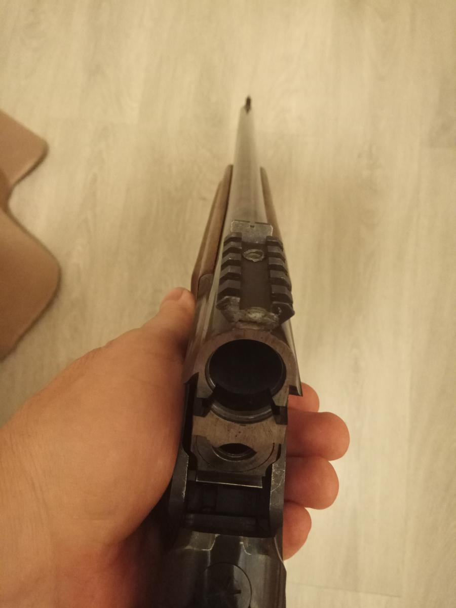 Ружьё из первой серии, которая собиралась качественно и с умом, стволы спаяны одной планкой, имеющей прорези для компенсации увода СТП при нагреве стволов. При изготовлении был изменён порядок работы спусковых крючков: передний - верхний (гладкий), задний - нижний (нарезной). Используемый рантовый патрон позволяет не беспокоится о проблемах с экстракцией гильзы.