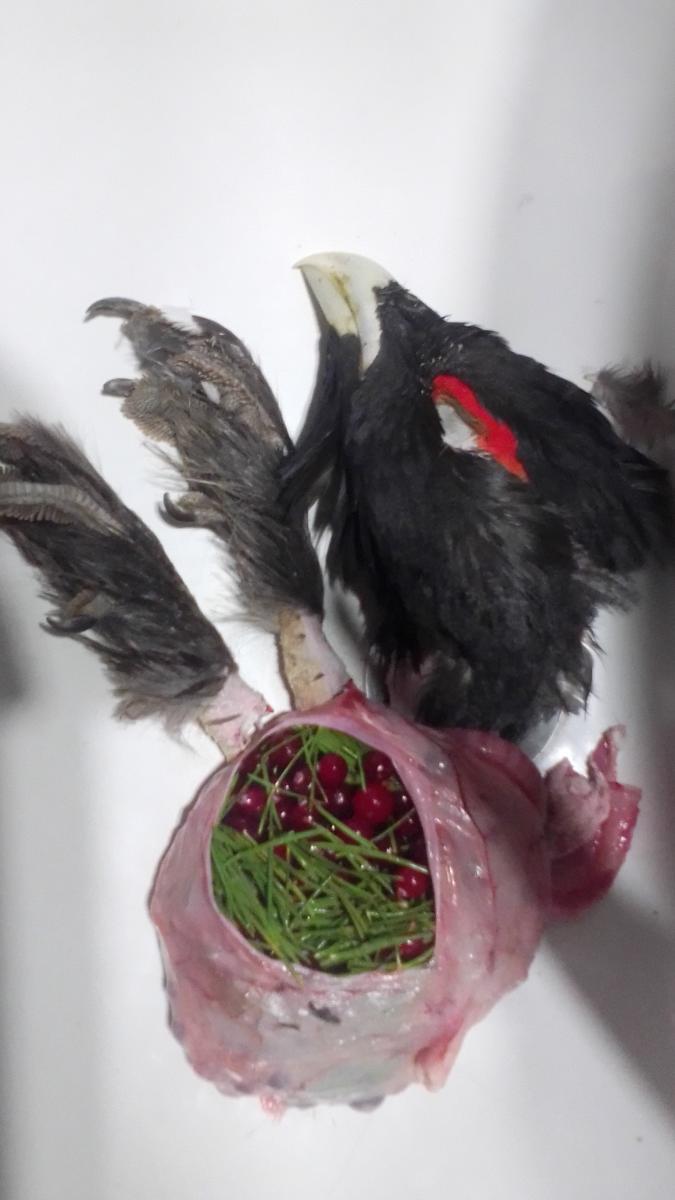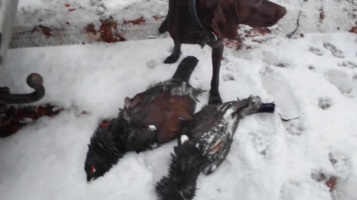 Если бы не собака не нашли. Второй матёрый чуть проще. Сидел посреди болота как статуя. Взят 223 метров за 150, но пришлось лезть в болота соба начала его трепать в азарте и не доносила до берега зараза. Молодой наверно около 3-3.5кг у товарища нечем взвесить. Взрослый правда по напольным ровно 5ть кг. Но очень здоровый петух. Завтра попробую точнее для Айно взвесить.