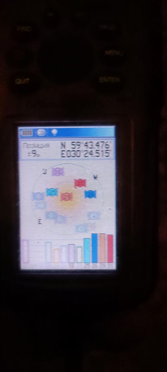 ,пишет что видит 48 спутников и 30 из них в работе .Причём координаты гармина +-7 метров пишет .