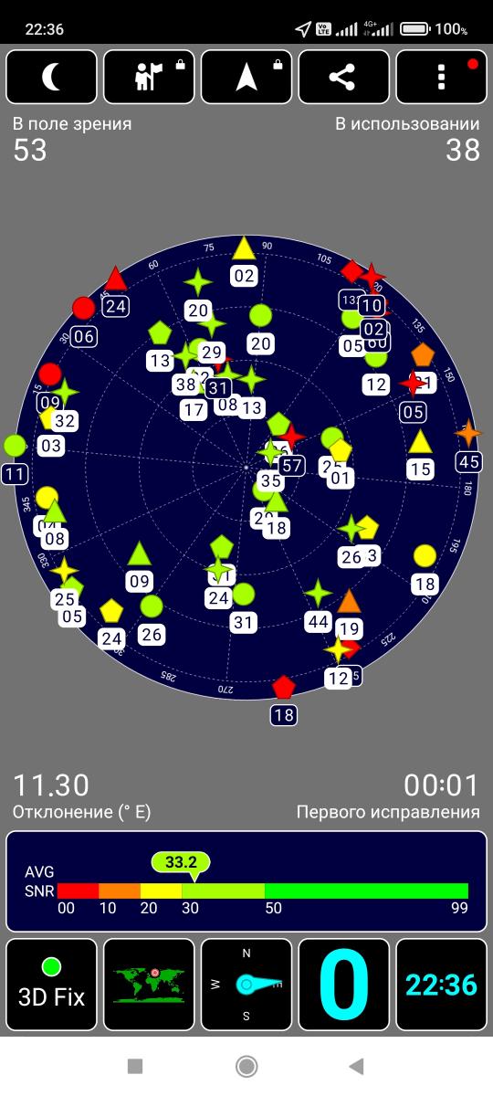 Как можно видеть спутник "около" - видит полспутника?GPS телефона намного бодрее , точность 1 метр , видит около 53 спутника ,в работе 32
