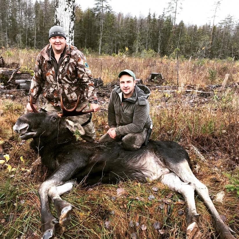 Только встал на первый номер, буквально через пару минут, заработал кобель. Через пару минут на вырубе появился лось, метров за 150.