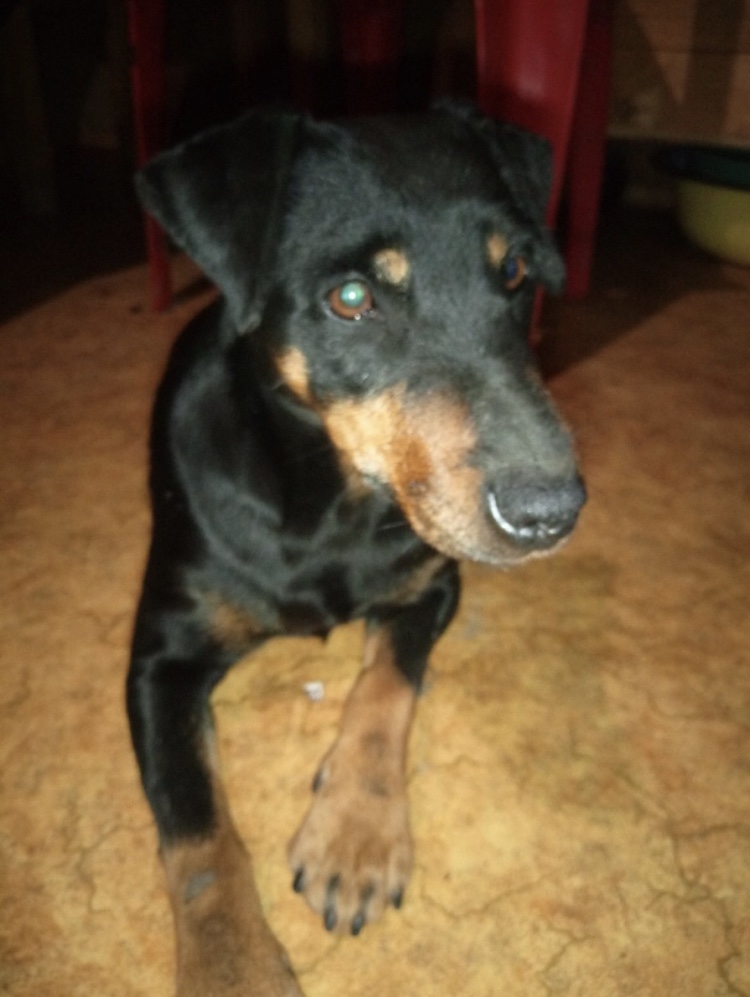 Найдена сука гладкошерстного ягдтерьера в полях в районе Кобралово, возраст около 5 лет на вид,