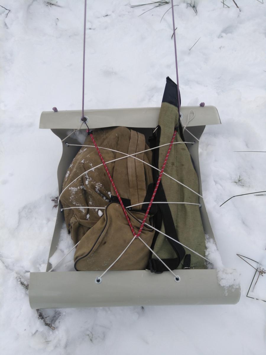 Новые разработки- СКЛАДНАЯ УНИВЕРСАЛЬНАЯ ВОЛОКУША, предназначена для охотников, рыбаков, туристов и даже сгодится для дачников. Волокуша складная (скручивается в рулон не больше тубуса для чертежей), изготовлена из морозостойкого пластика, имеет шнуры для перемещения и закрепления грузов. Охотникам очень пригодится для вывоза добычи из труднодоступных мест до транспорта, рыбакам для перевозки ручной клади и рыбы, если те добираются до водоёмов на общественном транспорте, туристам для перевозки снаряжения, дачникам дотащить личные вещи от электрички до участка, а так же может использоваться как санитарная (спасательная) волокуша, для транспортировки раненых животных и людей. Волокуша легко скользит по снегу, не заваливается на бок с грузом, не трескается даже на сильном морозе (до -60 С), не рвется об сучки и коряги, легка в использовании, не занимает много места (в отличие от корыта) и имеет маленький вес (до 1 кг).
