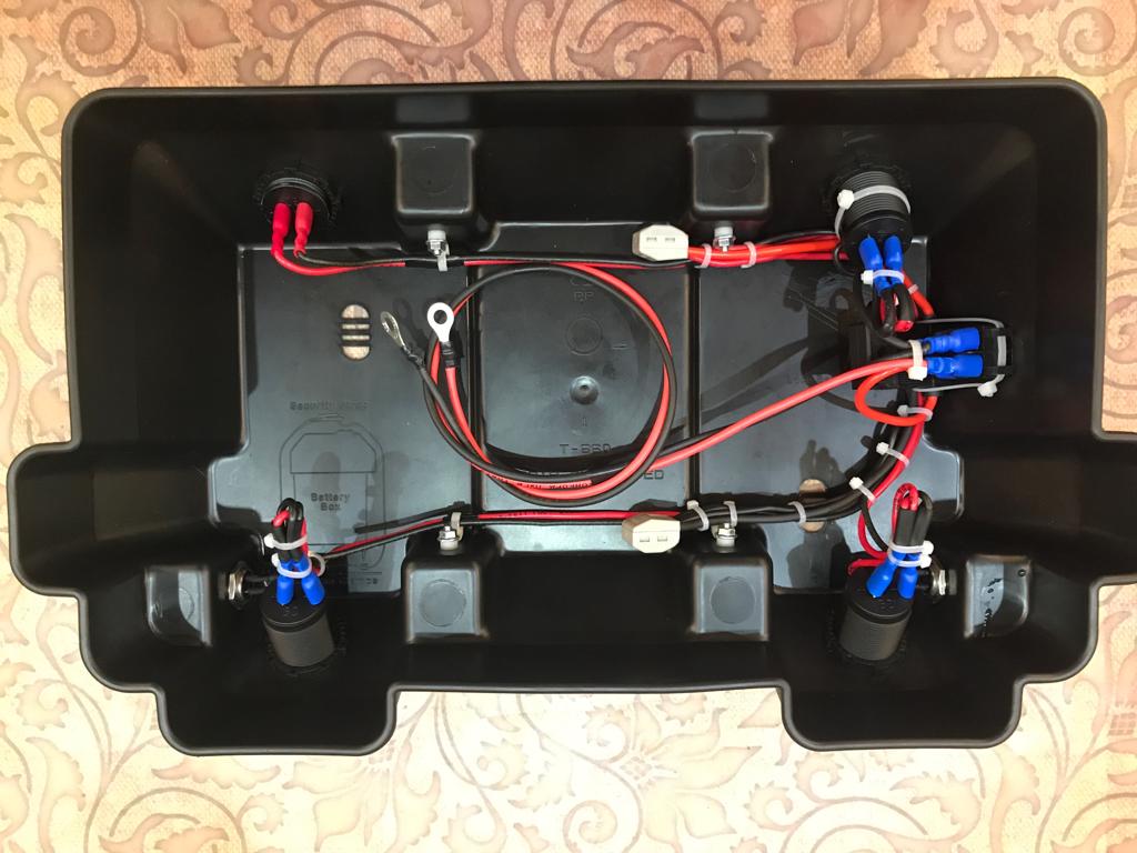 или уже как у меня самого, сделанного из американского Attwood Large : тут тебе и вольтметр и usb-зарядка, и прикуривателя 2 шт. и 2 разъема на любые приборы (эхолот и т.д.)