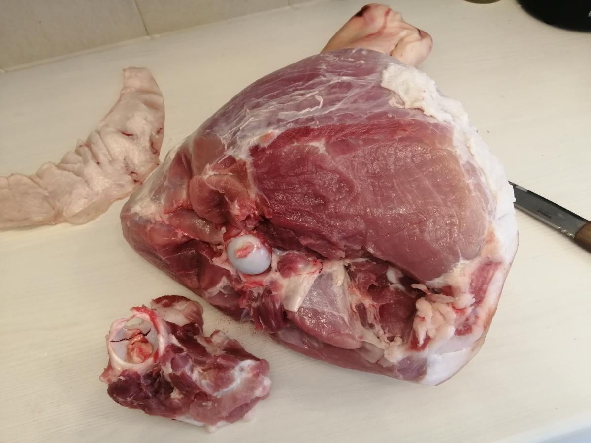 [FONT="]Следует уделить особое внимание наличию костей в куске. Крупные кости нужно надколоть или надпилить для проникновения соли в их полости, иначе кость внутри может затухнуть и испортить вяленый деликатес. Обычно в окороках бедренную кость обкладывают тканевыми мешочками с солью, делая надрезы вдоль кости. После просаливания мешочки с солью извлекают.[/FONT]