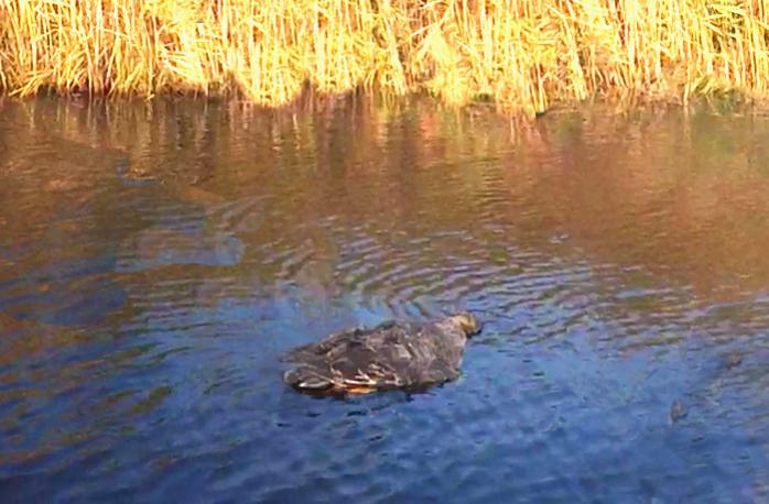 Ну не совсем. Там глубина полтора метра. От берега было метров 7-8. Разделся, зашёл, забрал, вышел. Бывает и за утками таким макаром приходится. Конечно, вода прохладная, но ещё вполне терпимая.