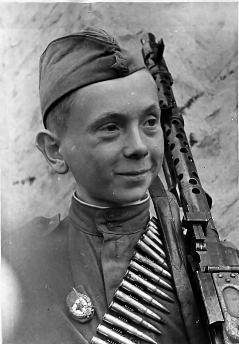 Саша Капустин с пистолетом-пулеметом системы Шпагина (ППШ-41)