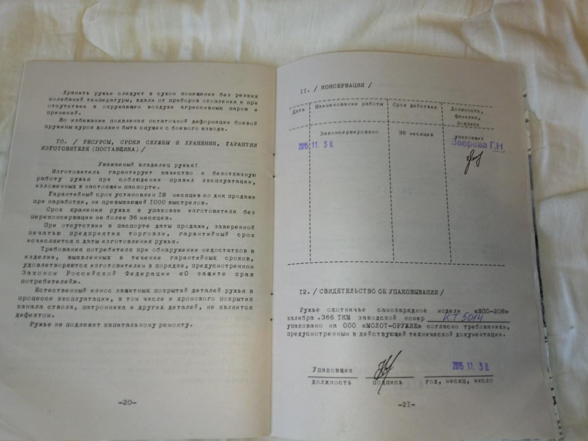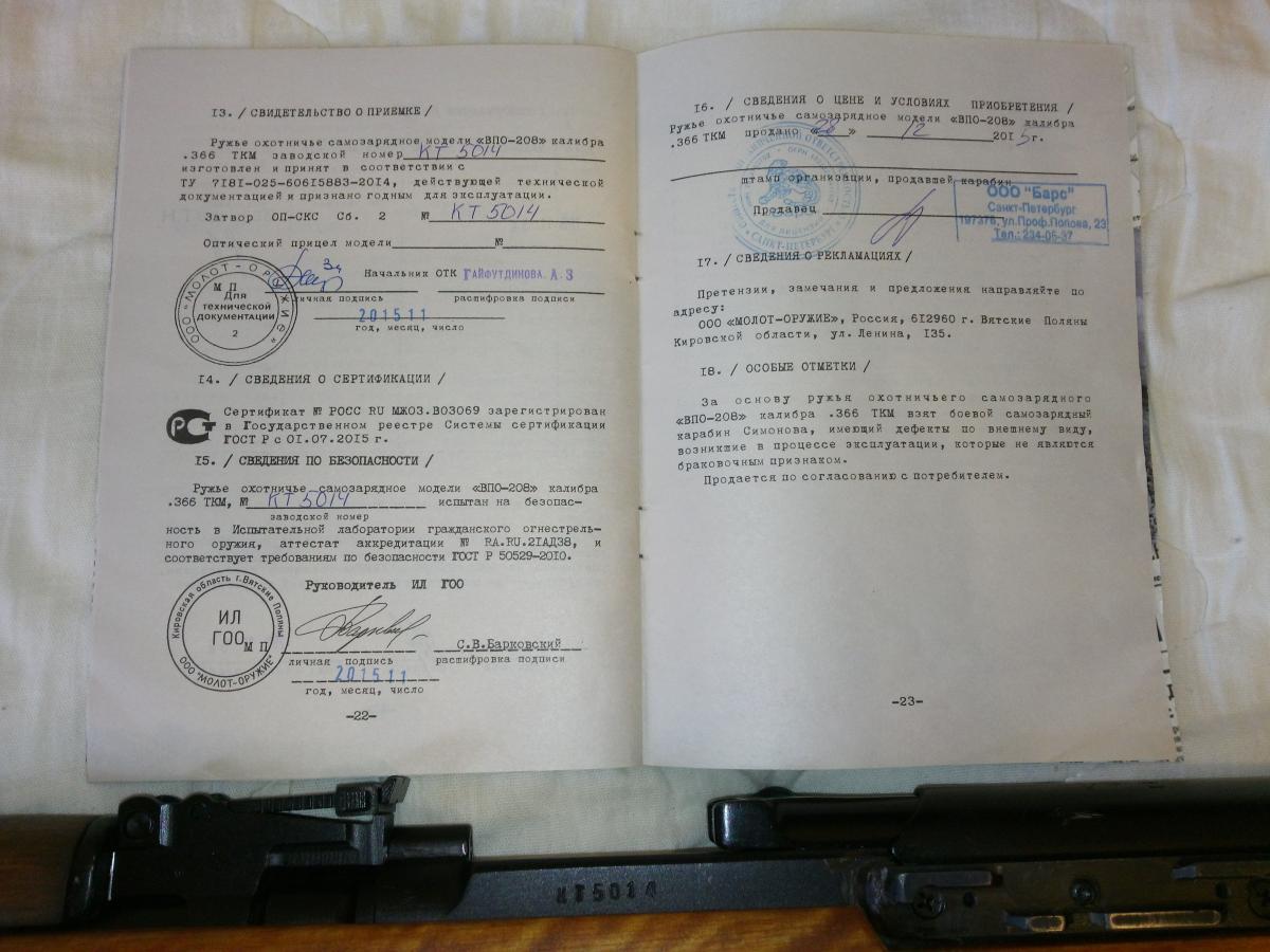 - Бекас-12М авто; ВПО-205-01-L570; Сайга-МК 7,62х39 исп.033; Remington 700; Remington 597;