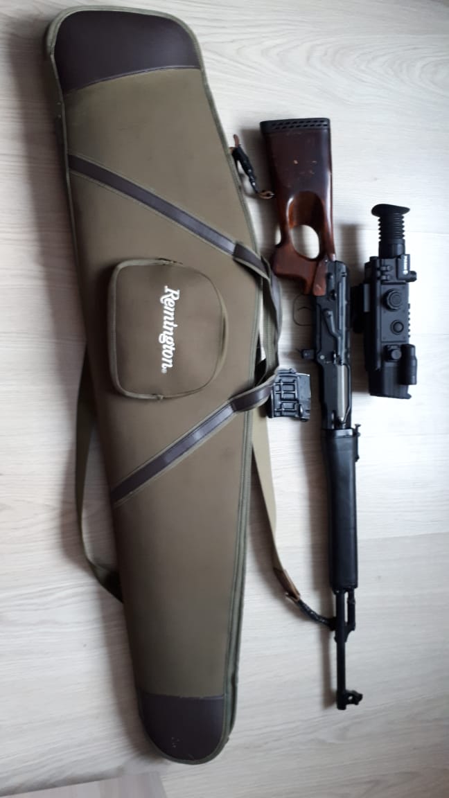 Тигр короткий 530мм без пламегасителя, шаг нарезов 240, продается комплектом с цифровым прицелом Пульсар 960 на кронштейне с доп аккумулятором и мощным доп. ИК фонарем, два магазина на 5 патронов, чехол на карабин и остаток патронов. Обоснованный торг