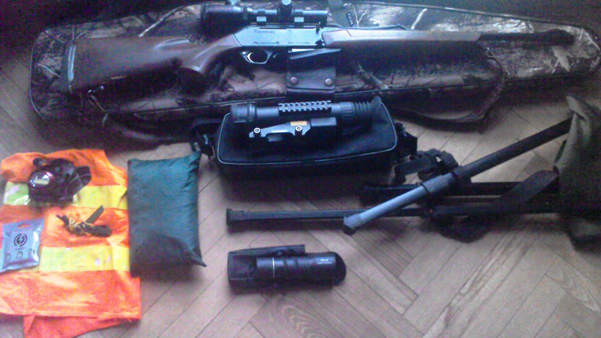 Хороший полуавтомат, никогда не подводил. В комплекте к карабину - всё необходимое для охоты на копытных: чехол и кейс для оружия, оптика дневная HAKKO Superb 1-4х24, ночник PHANTOM 2+,B патроны 28шт. монокль 16х40, стул высокий складной, сошка-упор, жилет оранжевый и ещё всякие нужные мелочи. Вам остаётся только одется по погоде, и в лес