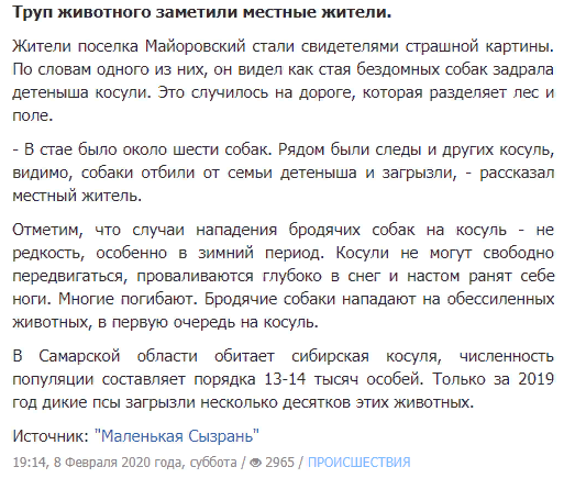 Наст у нас сейчас держит собак. У меня немецкая овчарка (32 кило) легко на галоп выходит, но изредка пробивает наст. Легавая же вообще летит как пуля. Копытные все наст пробивают. Так по всей области. Причём косуля у нас не европейская, а сибирская и она тяжелее. Поэтому и забили тревогу в департаменте. Сказки?Сказки.