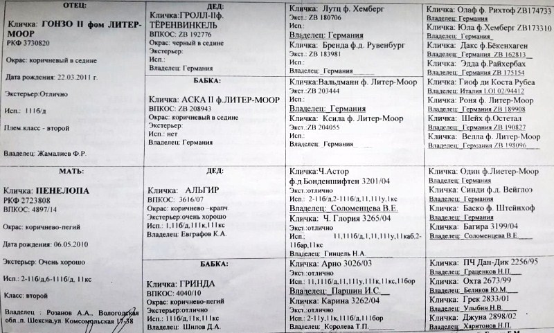 5. Отец: ЛОРД, 30.09.2014гр., РКФ 4012918, ВПКОС 5194/15 (GONZO II vom LIETHER-MOOR, ZB 216275, вл. Жамалиев Ф.Ф. - ПЕНЕЛОПА, ВПКОС 4897/14, вл. Розанов А.А.) вл. Гурцев Алексей (Санкт-Петербург)