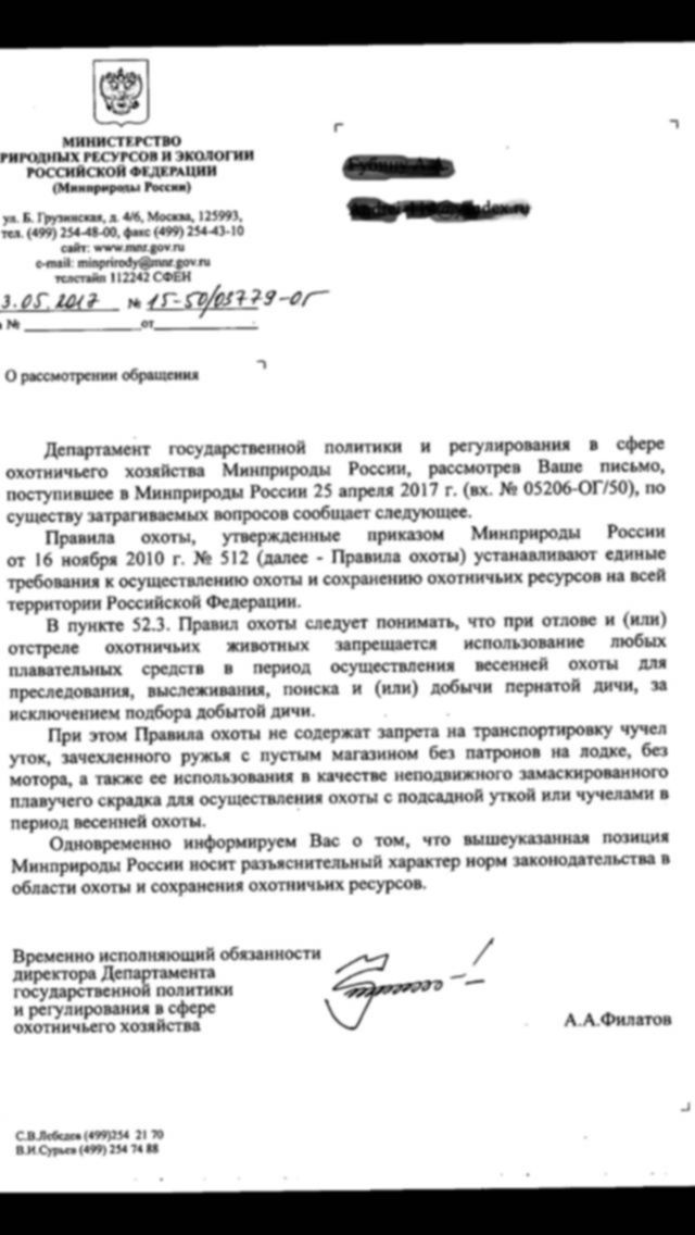 Это ты ГИМСу расскажи )) запрета в 52.3 использовать плав средство к качестве укрытия нет. НО, что есть укрытие? Оно на земле, а на воде, а охотник стоящий в "лешем" в укрытии? Он не может передвигаться, а укрытие может. Нет же запрета на передвижное (мобильное) укрытие, скажем на гуся "лежаки".В Параметрах охоты - пост. губернатора ЛО № 145 пг, просто слово "укрытие" (весной). Юридически термин не раскрыт, то есть проверяльщик, сам себе режисёр.