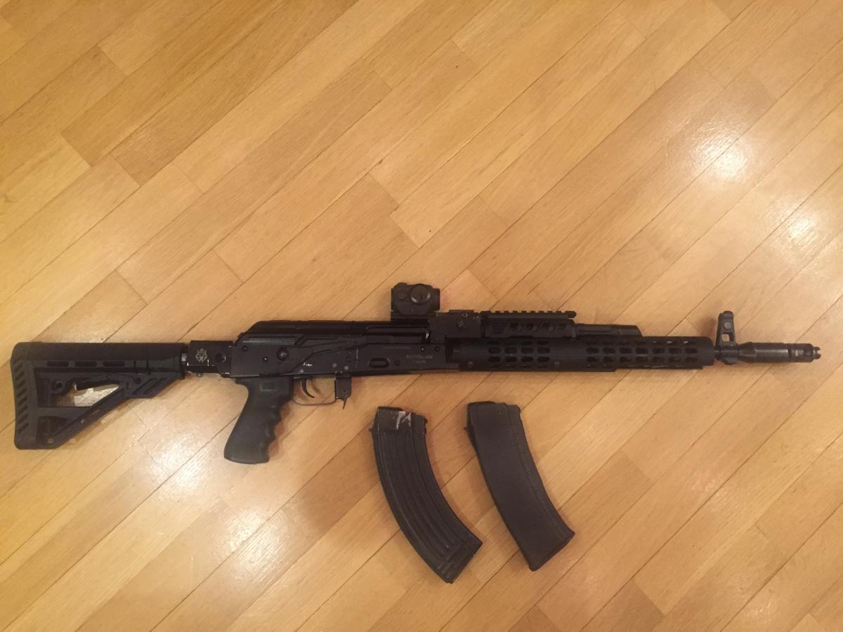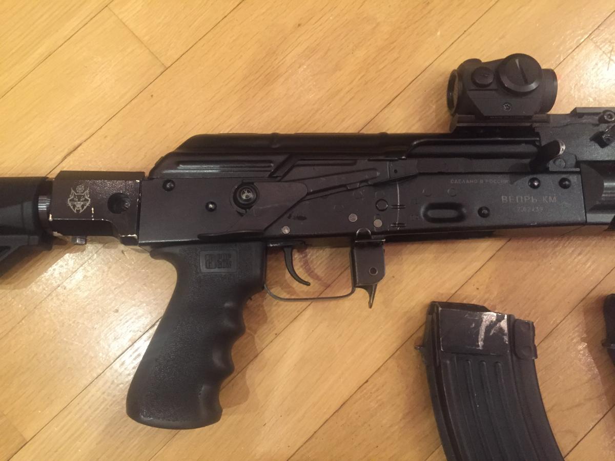 В комплекте труба и переходник рысь, 4 магазина, двухстейджевый спуск, цевье, ручки, приклад, планка вивер вместо прицела , дерево в комплекте.