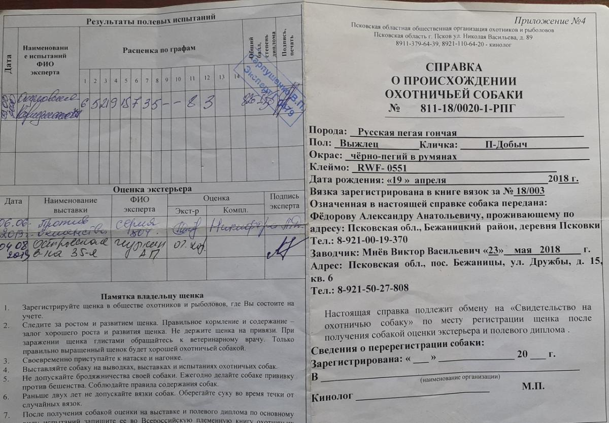 6. Все дипломы за рабочие качества с указанием по виду дичи: д-1ст. з/б.