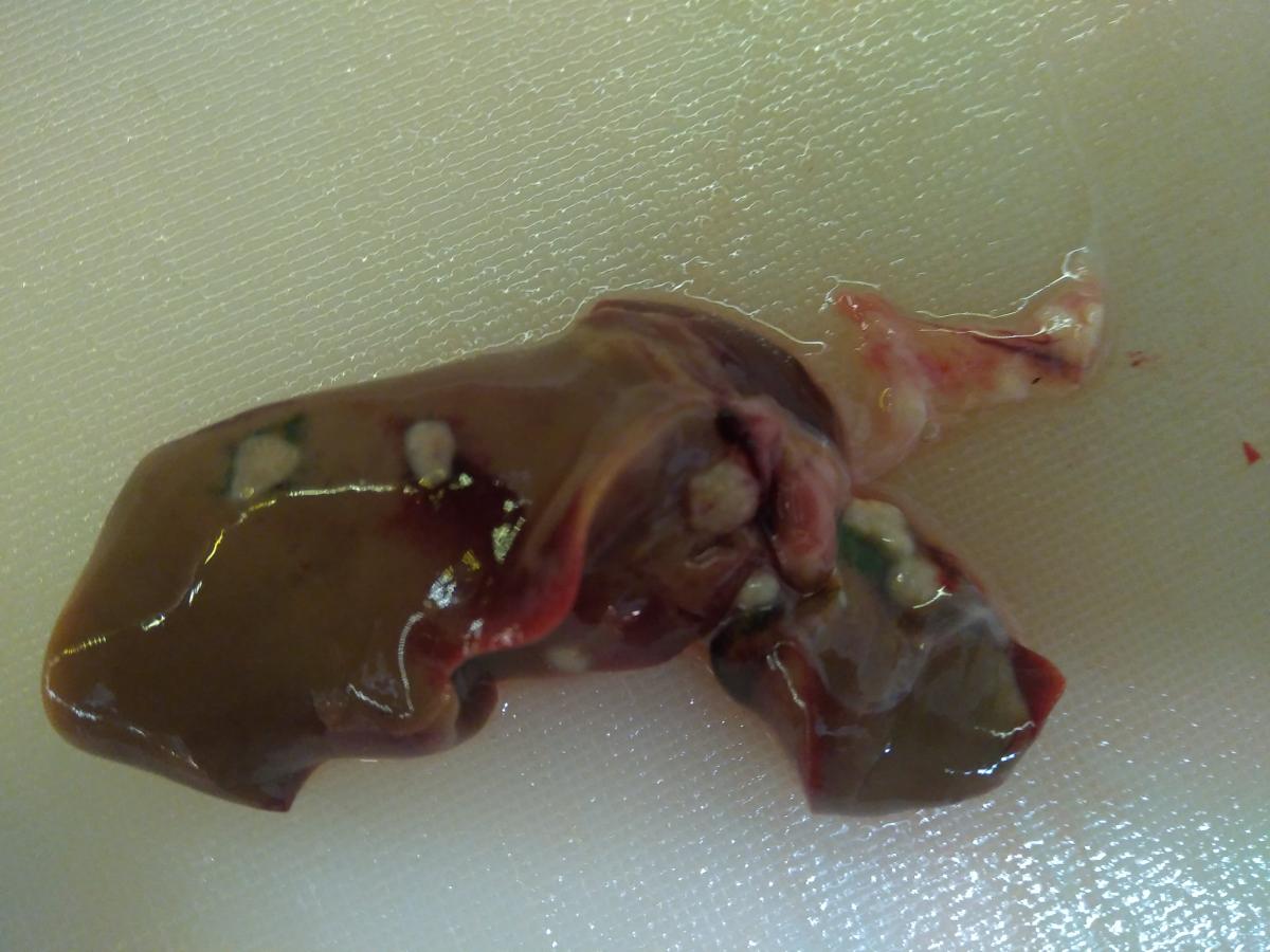 Вот такая печень. С тверденькими белыми вкраплениями до 4-5 мм.