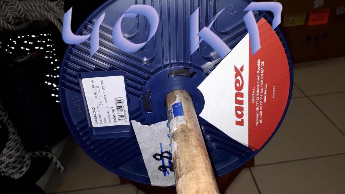Чешский шнур. Чехи честно не указали нагрузку на этикетке. Удлинение примерно в два раза . Тянул от пяти сантиметров. Разрывная нагрузка на безмене более 40 кг. Порвался при 45 кг. Это как раз тот шнурок который был предметом поиска и который пользуют некоторые местные старожилы. К сожалению данного шнурка с сегодняшнего дня нет в продаже. Я сегодня забрал остатки.