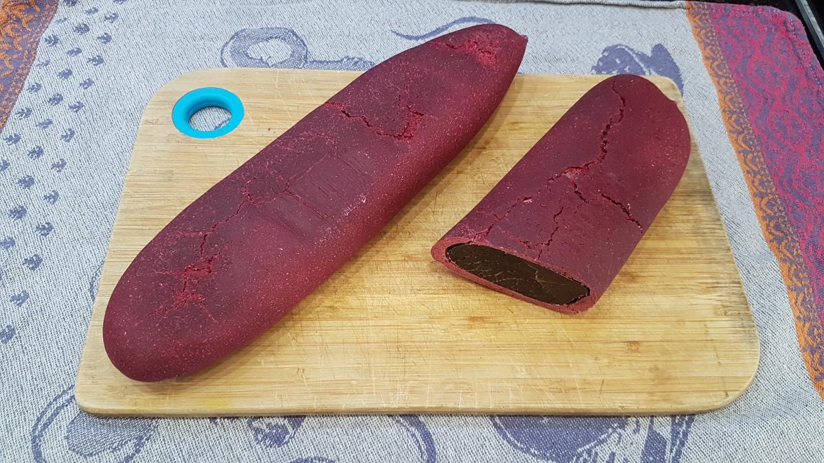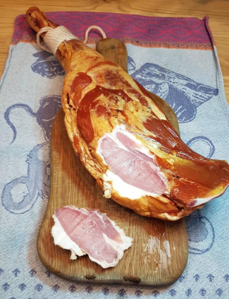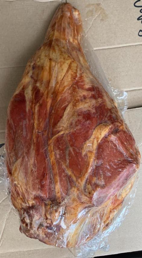 Делается из задней четверти ноги (самое сочное мясо), вес примерно 2-2,5 кг. Специи - смесь перцев. Кости нет, только мягкое, сочное и ароматное мясо.