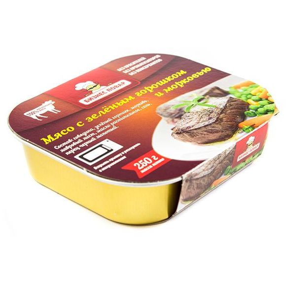 Мясо с зеленым горошком и морковью 250 г, Срок хранения 3 года, 11 шт. - 93 руб.