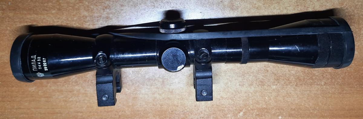 Покоцана конечно. Покрытие на большой линзе немного протерто. Брал Вепря .308 у пенсионера, так в нагрузку ЭТО получил. Как ствол купил, так прицел и снял. Валяется без толку. На мелкан должно пойти... Сетка пенёк, как на ПУ.