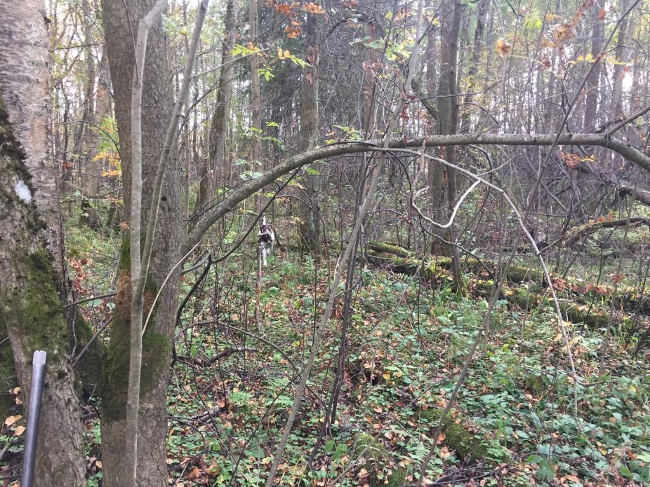 Далее пошли вглубь, но ничего не нашли. возвращаясь обратно по кромке леса, собака начала распутывать наброды, и еще один взлетел, но я с предохранителя не снял