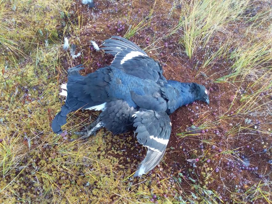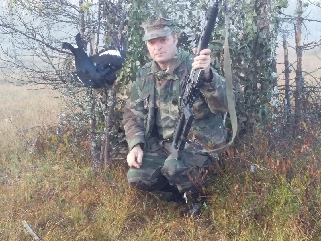 Все разлетелись, пошёл взял добычу, стою рассматриваю и рядом прилетает и садится на сосенку тетёрка. "Пацанов" своих ищет.