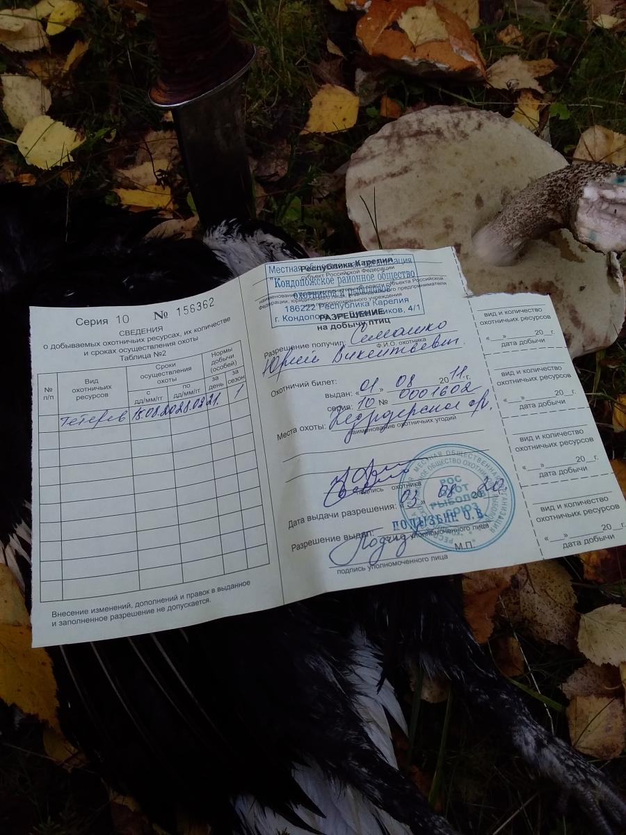 до начала разделки и транспортировки добычи сделал отметку в разрешении.
