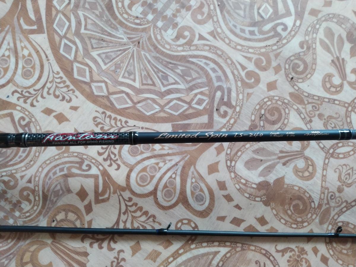 2. Fantom Limited Spin тут более бюджетная версия, воблеры от не любит, но я брал его для проводки колебалок, вертушек, попробовал 1 раз, работает хорошо, но рыбу не поймал. Длина 2.4м., тест 5-20гр., кольца SiC, строй Fast, материал бланка IM-8. Спиннинг так же в отличном состоянии.