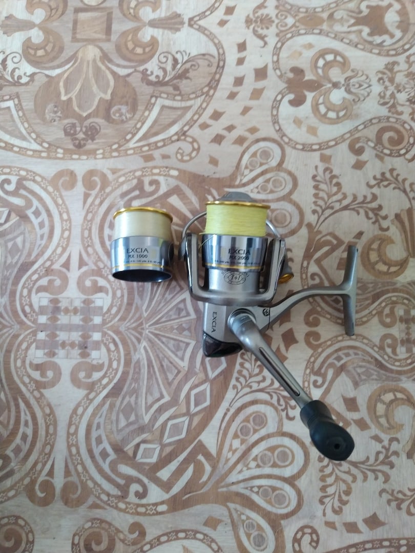 1. Катушка Ryobi Excia MX 2000 + запасная шпуля размера 1000, катушка в отличном состоянии, плавно вращается и идеально работает, ни разу не тонула, в песке не лежала, да и особо на рыбалке то и не использовалась. Количество подшипников 8+1, передаточное число 4,9:1