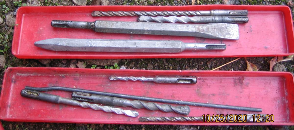 Комплект как продавался, кейс, инструкция, пика, долото, штуки 3 бура, ключ, баночка смазки для буров (почти полная однако, что о работе его говорит - с продажи не обновлял), резиновая насадка пылесборник, ручка и ограничитель. Бонус сверлильный патрон быстро зажимной с переходником на SDS плюс (брался отдельно) Могу пару-тройку буров добавить в нужном размере На фото то что могу отдать, в основном все буры Бошевские по 10-20 отверстий не более прошли.