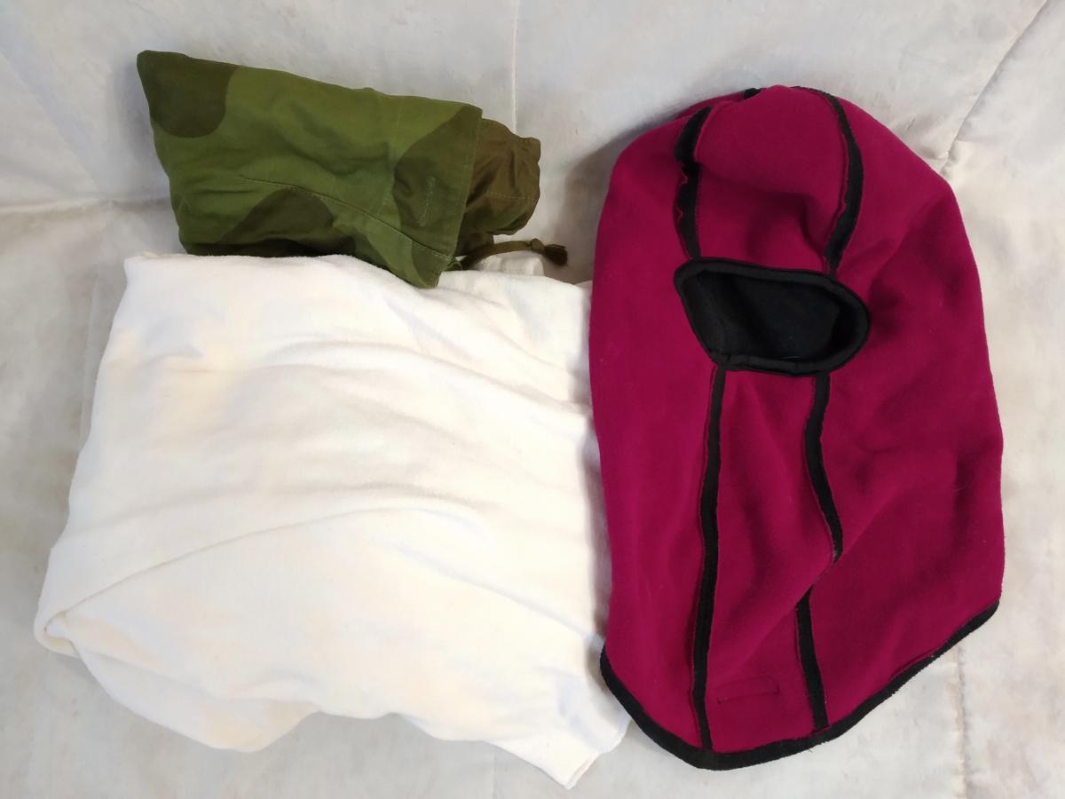 4) Флисовая, достаточно качественная шапка для зимы. Черно-красная. Можно носить любым цветом наружу. Один раз была одета.