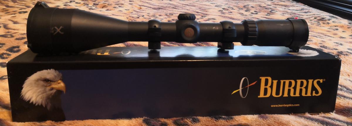 BURRIS FourX 3-12×56 (200780-MIL). Стоял на пневме, 22lr, 223rem. Полный комплект, включая коробку, документы и тряпочку. Крышечки Butler Creek в комплекте не идут.