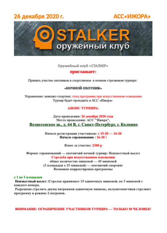 Ночной стрелковый турнир: "НОЧНОЙ ОХОТНИК", 26.12.20 г, АСС "Ижора", г.Колпино