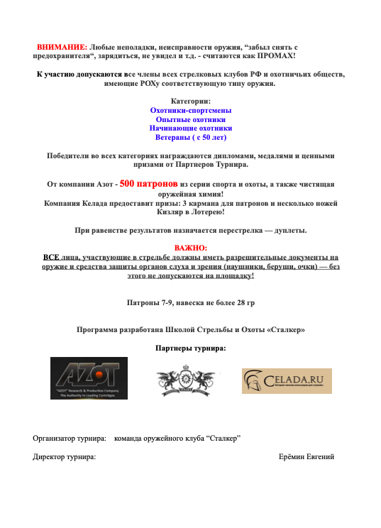 Организатор турнира: команда оружейного клуба “Сталкер”