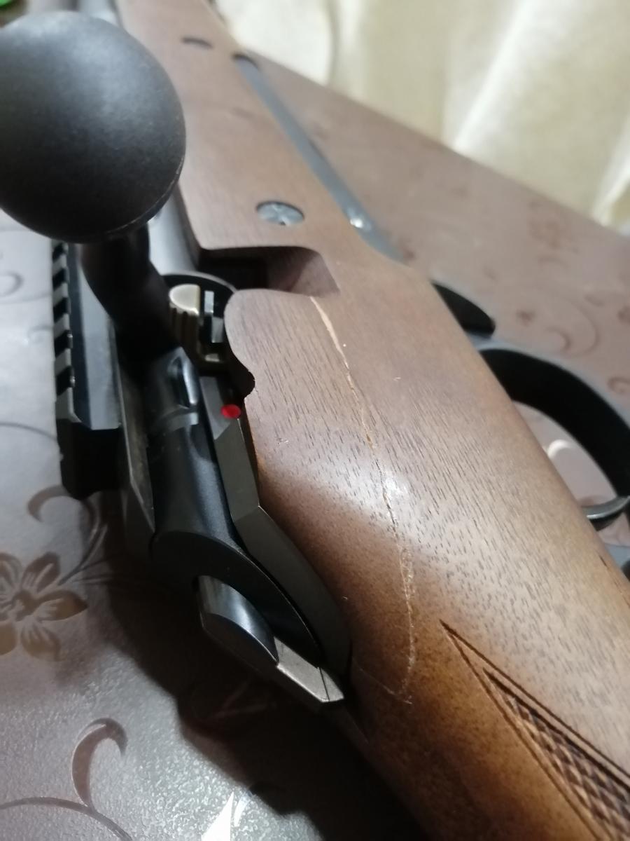 Отломленный кусочек дерева приклеил двухкомпонентным клеем, на выстрел никак не влияет, после этого кабан и 2 лося без вопросов. Без торга!!! В Левше под 190000руб + стоимость патронов сами считайте.