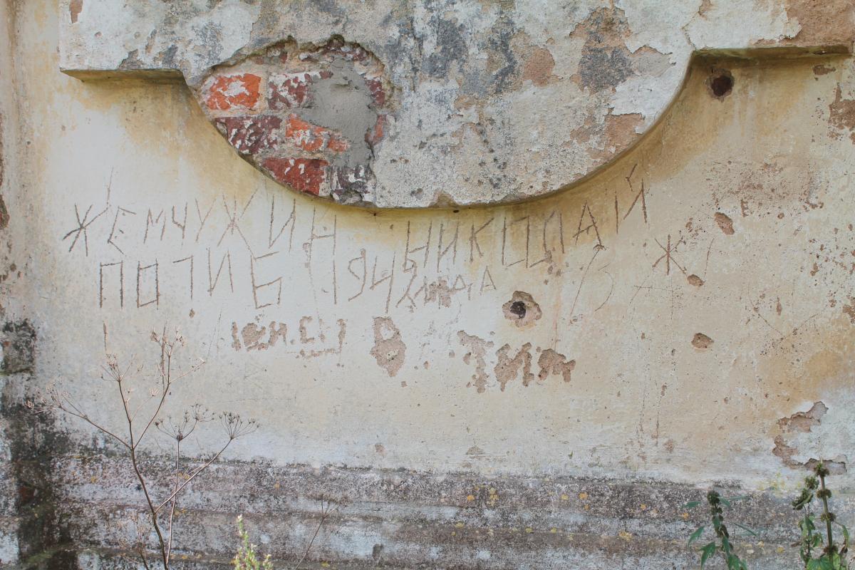 Вот эта церковь и одна из надписей на её стене.