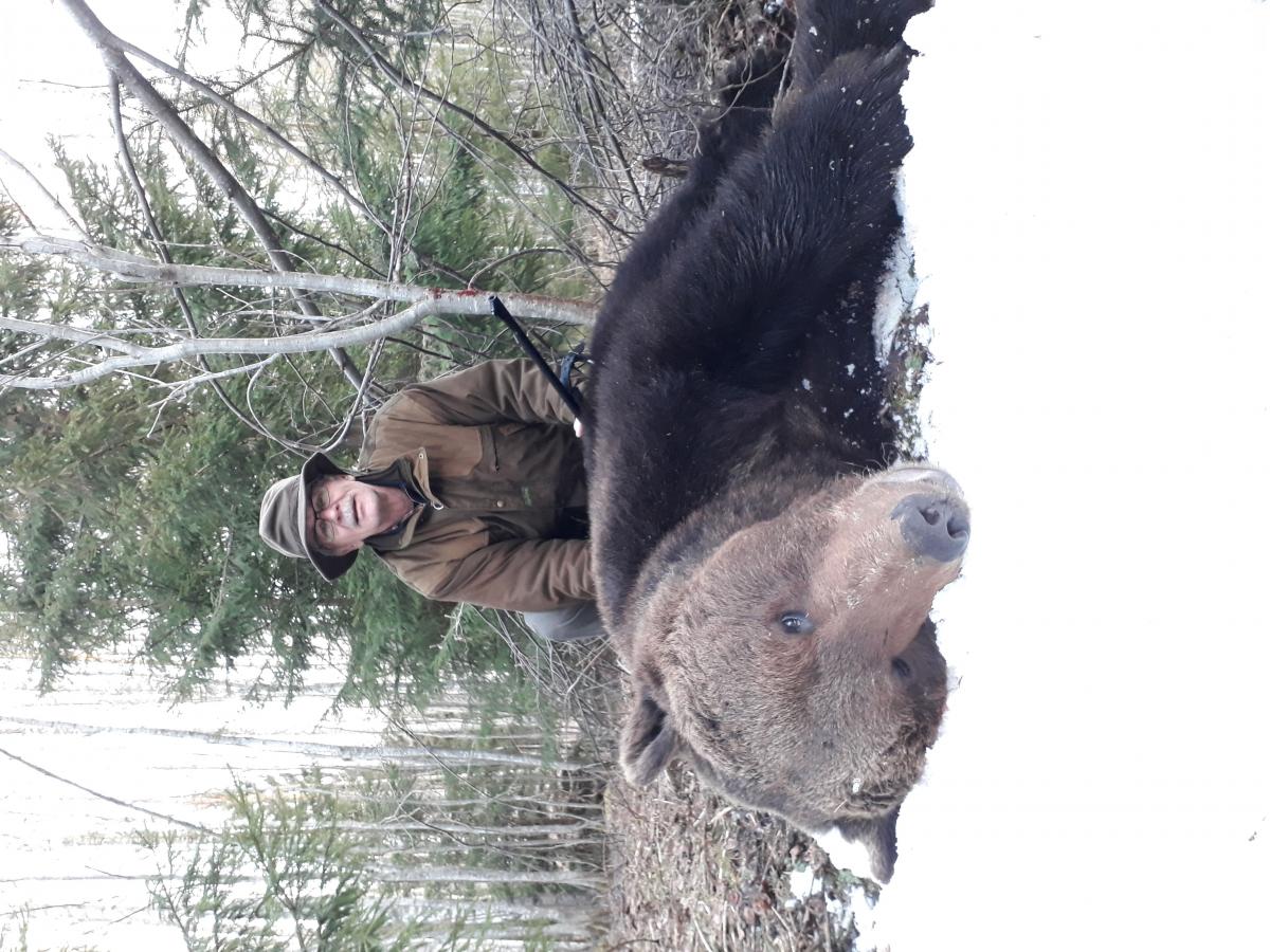Приглашаю на охоту на бурого медведя на приваде (весна 2021 год: с 25.04.2021 по 31.05.2021) в Карелию (Питкярантский и Суоярвский районы) в охотничье хозяйство ООО "Медведь". Группы с любой численностью охотников. Большая территория (158 тысяч гектар) и множество вышек с привадой (32 места) делают охоту результативной. Егеря с большим опытом. Рекомендуемое количество дней для охоты - не менее 3х дней. При добыче медведя оплачивается тур от 3х дней (егерьское обслуживание). Егерьское обслуживание 6600 руб. в день с одного охотника. Цена трофея до 100 кг - 72 тыс. руб от 100 кг до 150 кг - 90 тыс. руб.;от 150 кг до 250 кг - 102 тыс. руб.;свыше 250 кг - 120 тыс. руб. Ранение - 80% от стоимости. Добор подранка - 6 тыс. руб. (один егерь с собаками). Проживание в гостинице от 1000 руб. до 3500 руб. в зависимости от удобств. Питание в ресторане 3х-разовое 1000 руб. комплексное или по прейскуранту.