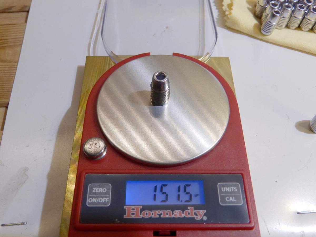 Недостаток метода в том, что весьма ограничен набор исходного сырья, и вес пули будет для калибра .357mag на легкой стороне. Тем не менее патрон получается в целом недорогим, а FMJ позволяет разогнать пулю не стесняясь.