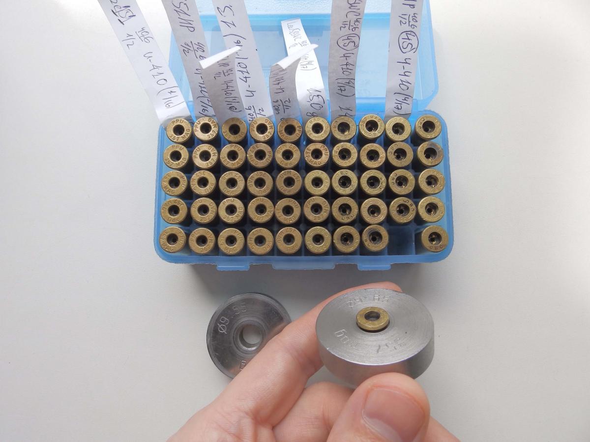 Восстановил описанным способом 48 гильз, часть из которых снарядил для изучения влияния замены капсюля на КВБ-45.