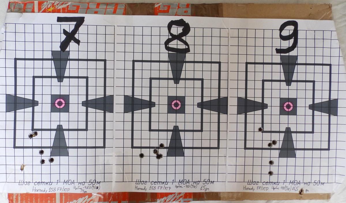 Hornady 158gr FP/XTP оказалась еще и самой кучной.